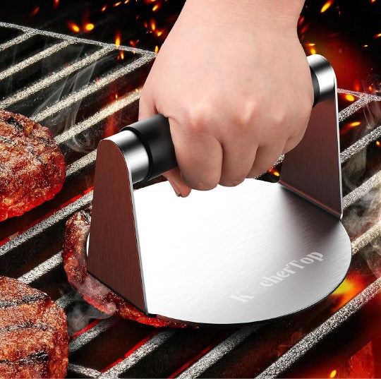 Esta prensa tiene el peso correcto para hacer una presión adecuada sobre la carne y dejarla crujiente y al mismo tiempo jugosa.