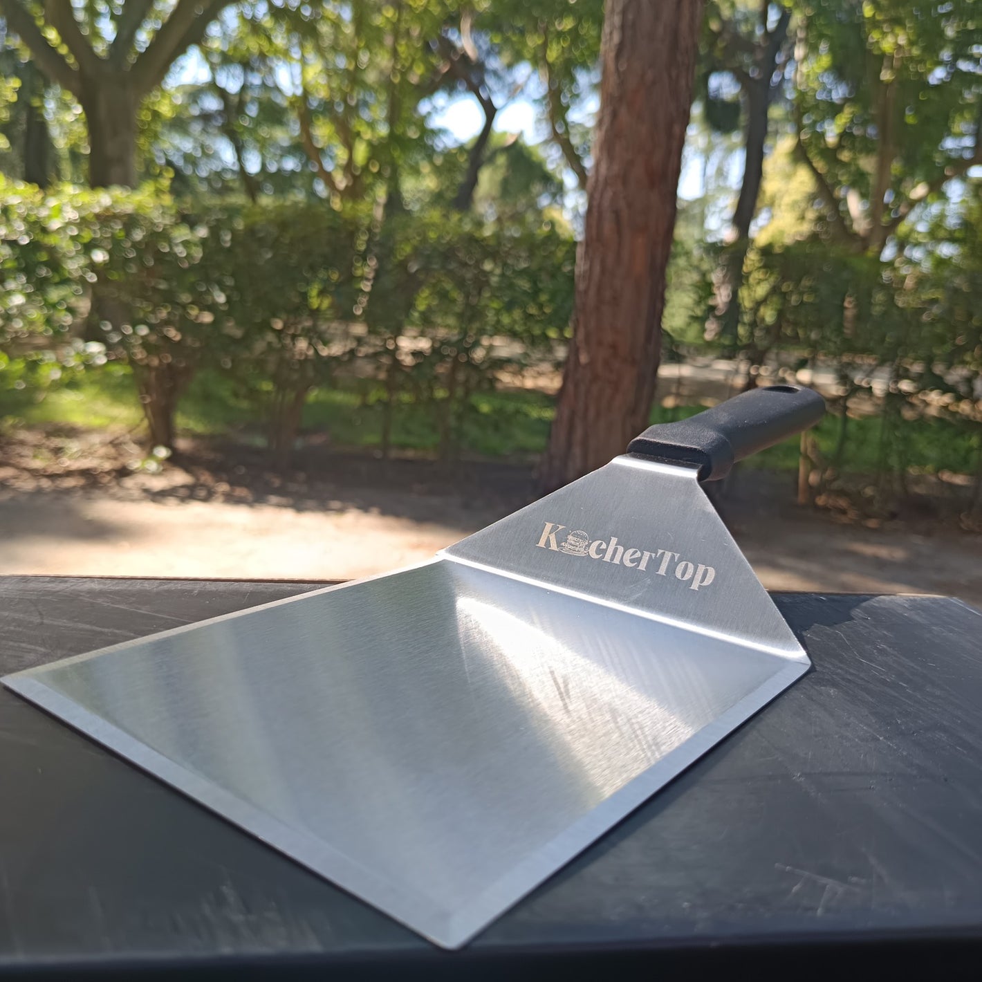 Con esta amplia espátula (de 31x13 cms) podrá voltear la carne con un sólo movimiento con gran versatilidad. Además el mango con material aislante protege de quemarse.