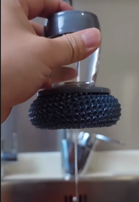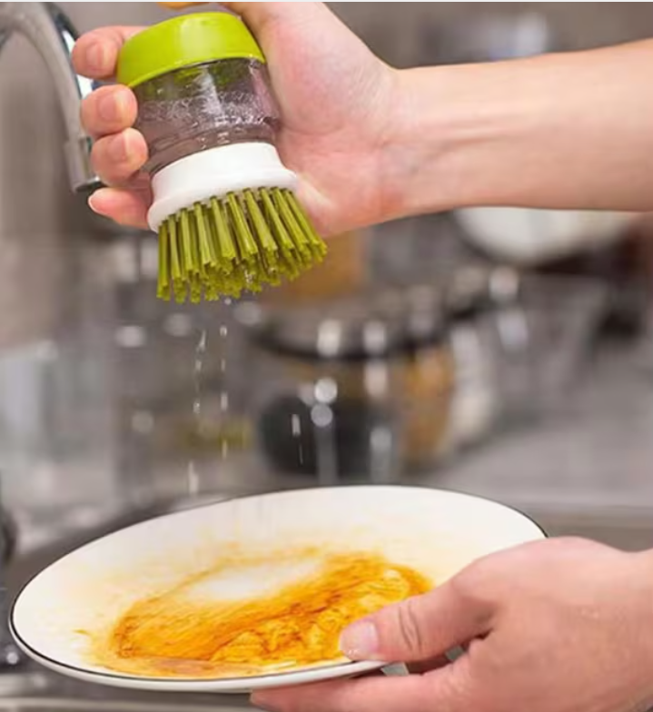 Este cepillo dispensador de jabón para fregar minimiza la estimulación del detergente en las manos.